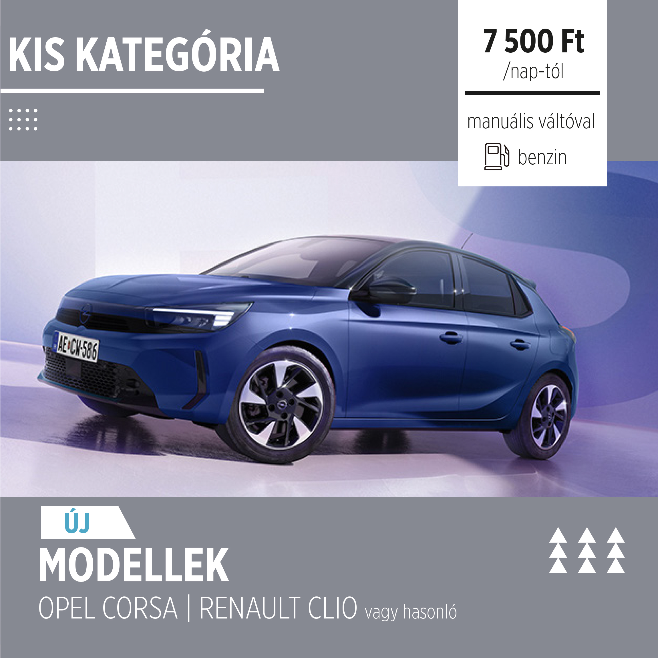 Opel Corsa, Renault Clio – ideális városi közlekedéshez és rövidebb utakhoz.