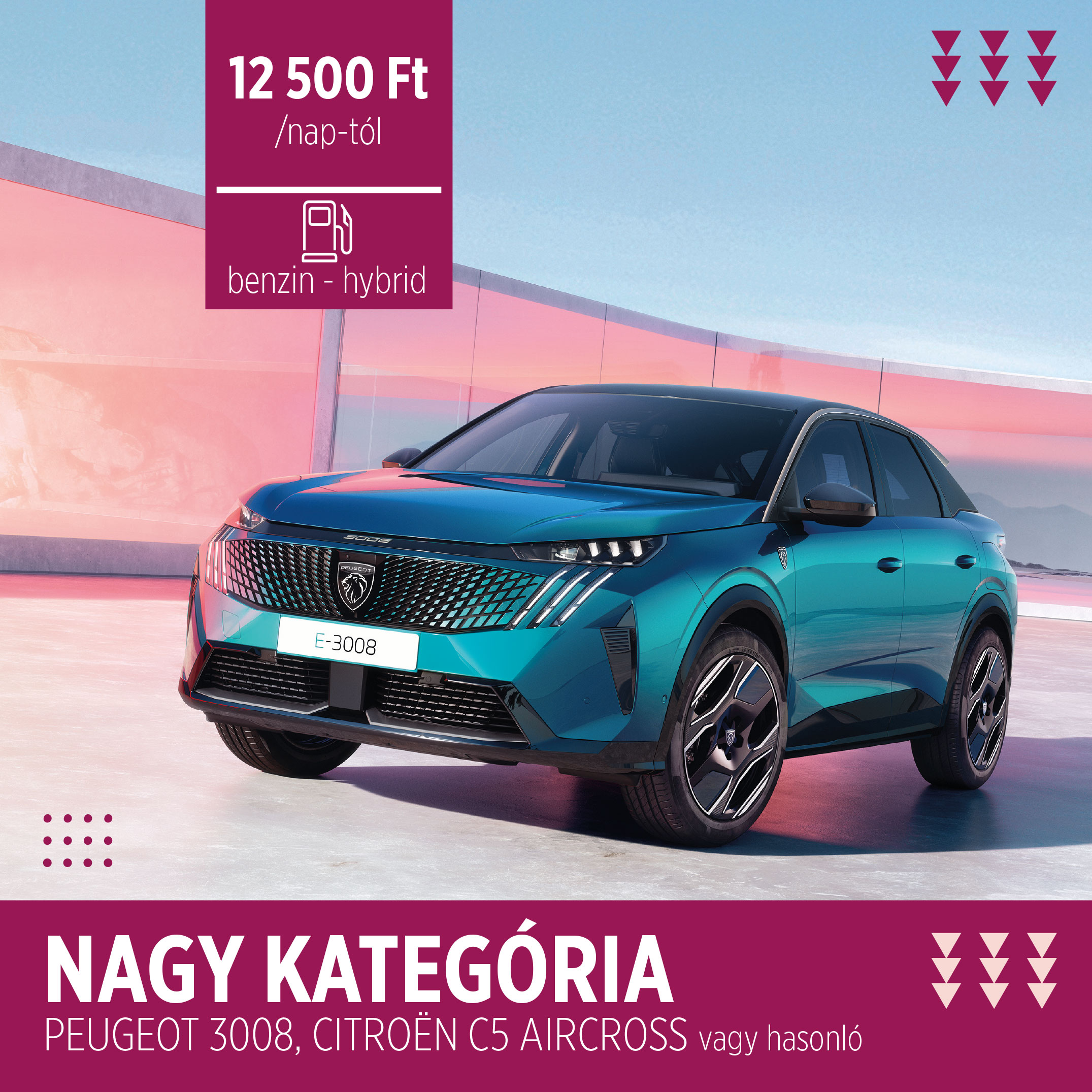 Peugeot 3008 vagy Citroën C5 Aircross – tágas, kényelmes családi autók hosszabb utakhoz.