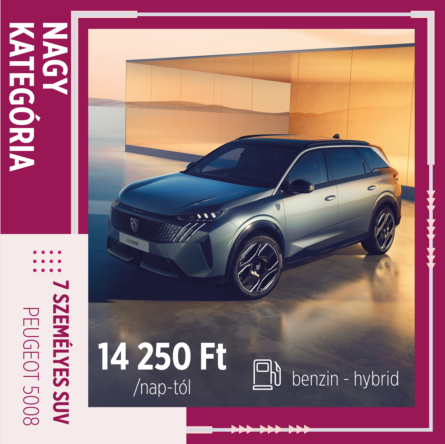 Flottánkban megtalálhatóak gazdaságos városi autók, kényelmes családi modellek, üzleti használatra ideális kombik, SUV-k, valamint 8–9 személyes kisbuszok is.